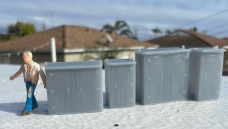 Single style or Set of 4 Modern Signal Boxes different sizes for options Signals, Traffic lights, Crossing gates... Adds great details for the layout.